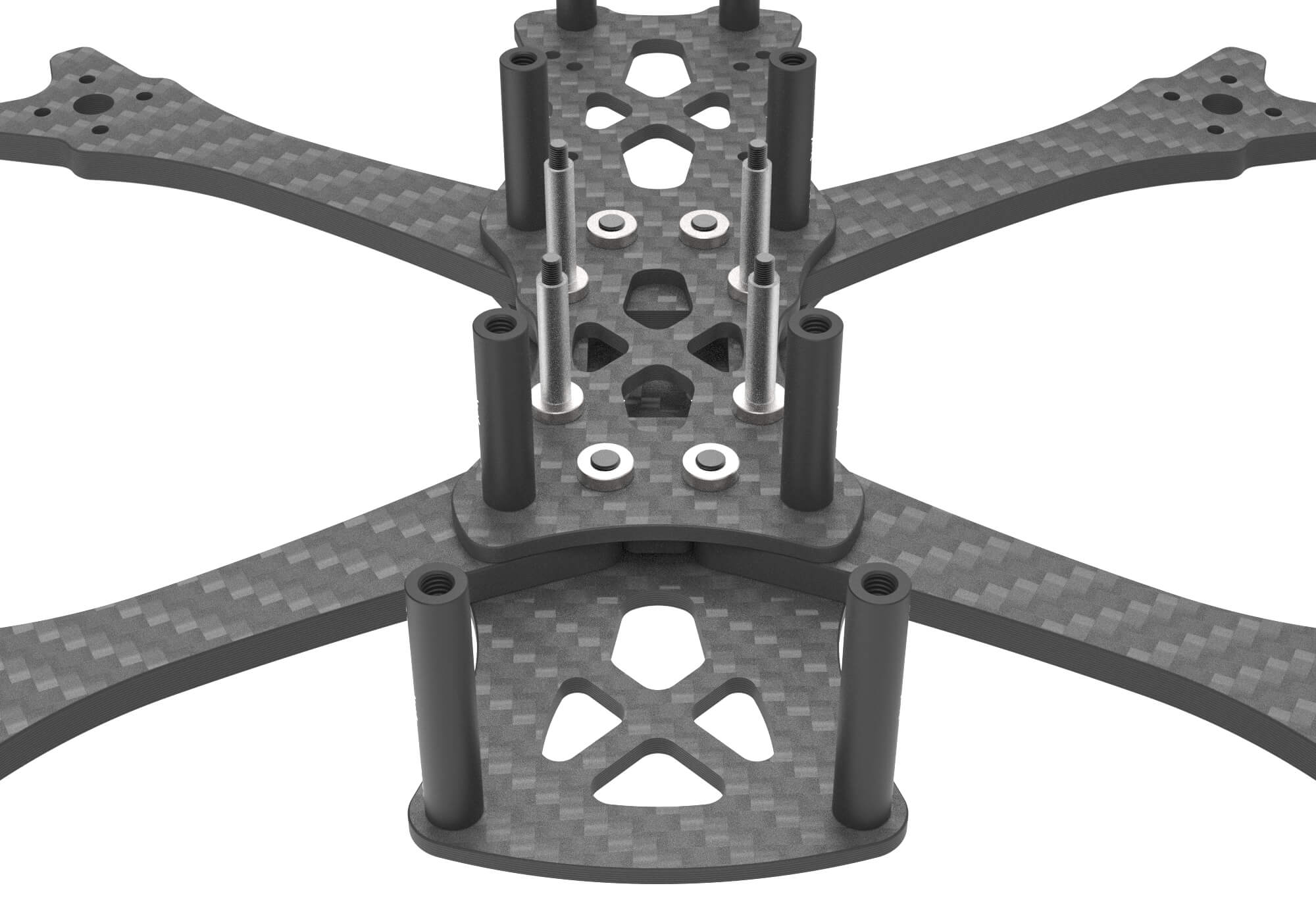 We took a zero-compromise approach to the primary chassis. By utilizing substantial M3 hardware and robust 7075 standoffs for the main structure, we achieved a level of torsional rigidity and impact resistance rarely seen in this class. It’s calculated overkill, ensuring your frame remains rock-solid flight after flight.
